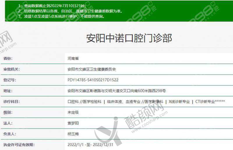 四、安阳中诺口腔门诊部基本信息: